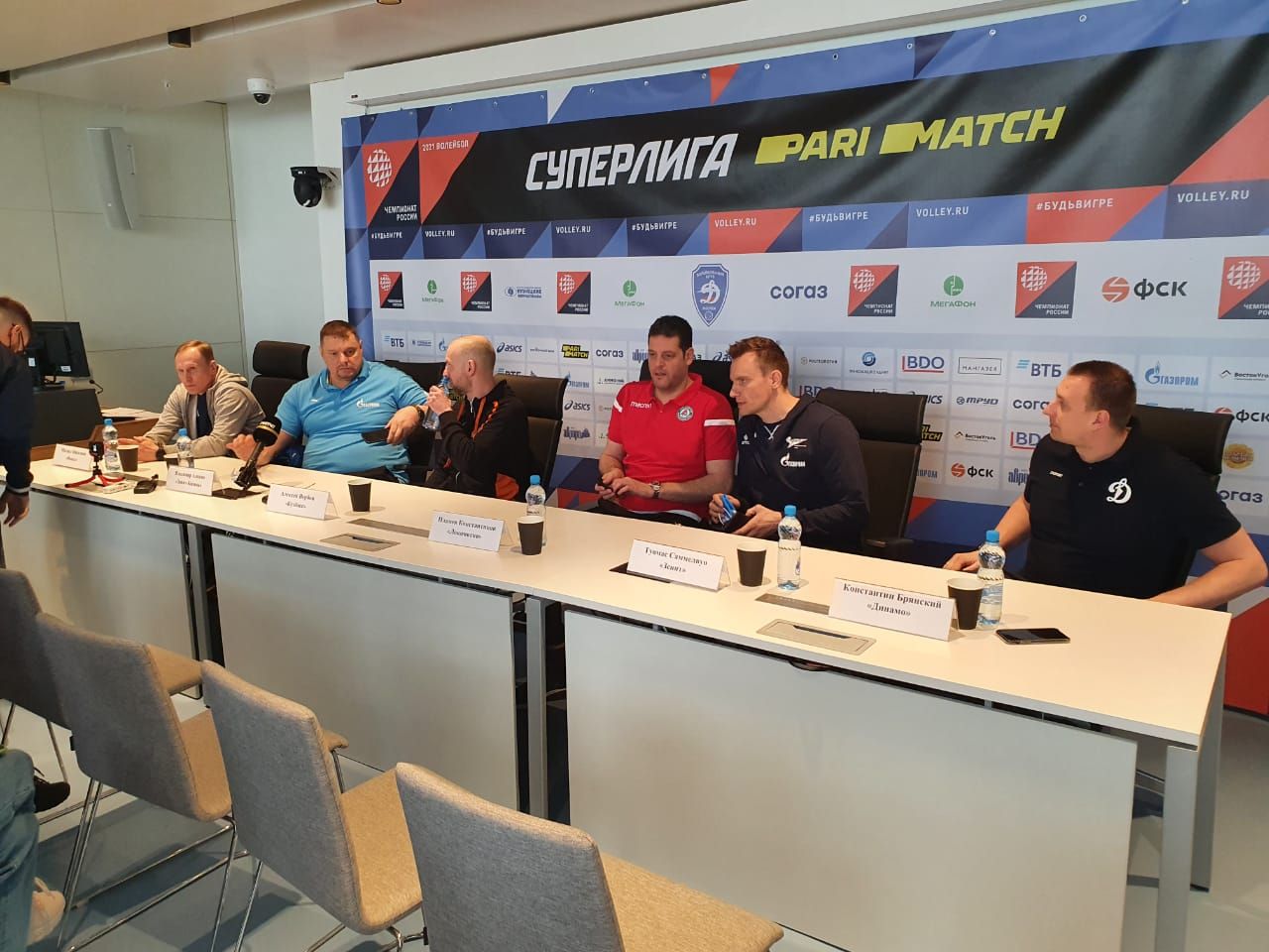 4 апреля в волейбольной арене «Динамо» состоялась пресс-конференция с участием главным тренеров команд, попавших в «Финал шести» чемпионата России Суперлига Париматч.