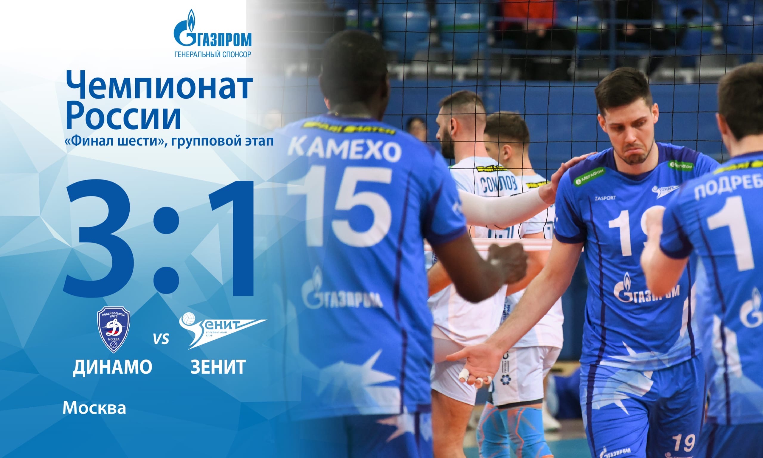 Динамо (Москва) – Зенит (Санкт-Петербург) – 3:1 (20:25, 25:21, 25:16, 25:21)
