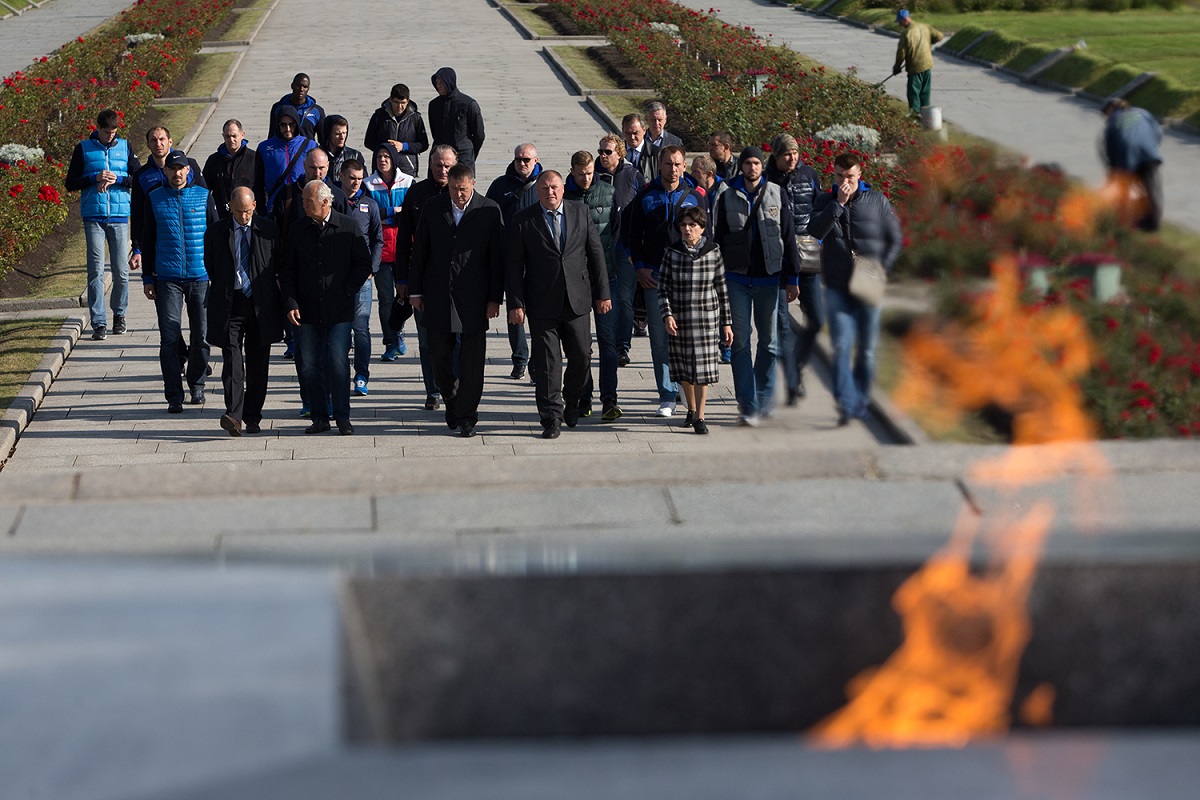 Руководители, игроки и тренеры волейбольного клуба «Зенит» (Санкт-Петербург) возложили цветы к подножию монумента «Мать-Родина» и посетили музей мемориального Пискаревского кладбища.