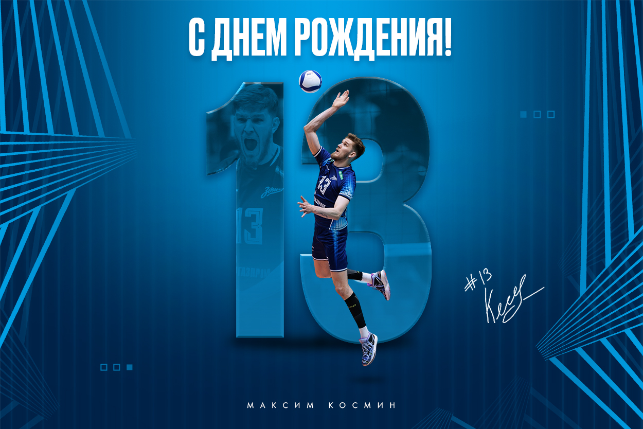 9 апреля свой день рождения отмечает центральный блокирующий волейбольного клуба «Зенит» (Санкт-Петербург) Максим Космин. Удачи, здоровья, счастья и побед! С праздником!