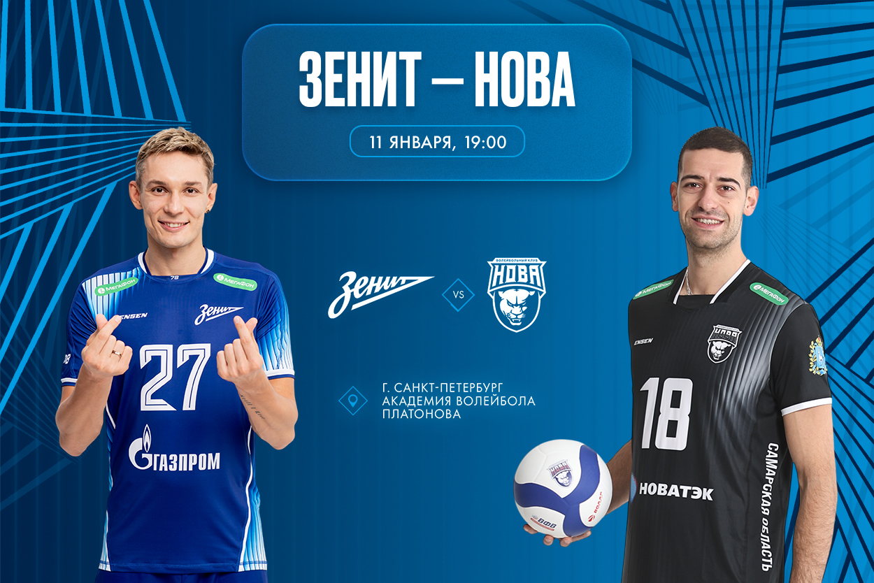 Матч «Зенит» — «Нова» начнется завтра, 11 января, в Академии Платонова в 19.00. Если вы не сможете попасть на игру, поболеть за сине-бело-голубых можно на телеканале «Волейбол», нашем сайте и volley.ru.