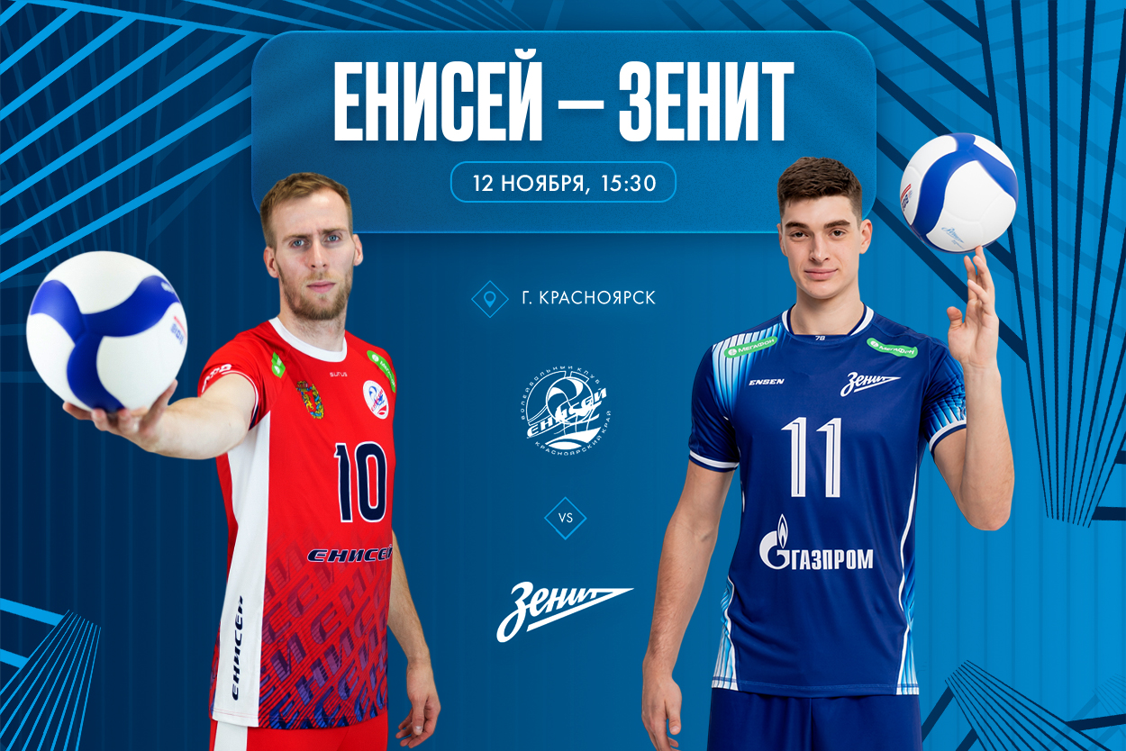 Матч «Енисей» — «Зенит» начнется завтра, 12 ноября, в Красноярске, в 15.30 (мск). Поболеть за сине-бело-голубых можно на телеканале «Волейбол», нашем сайте и volley.ru.