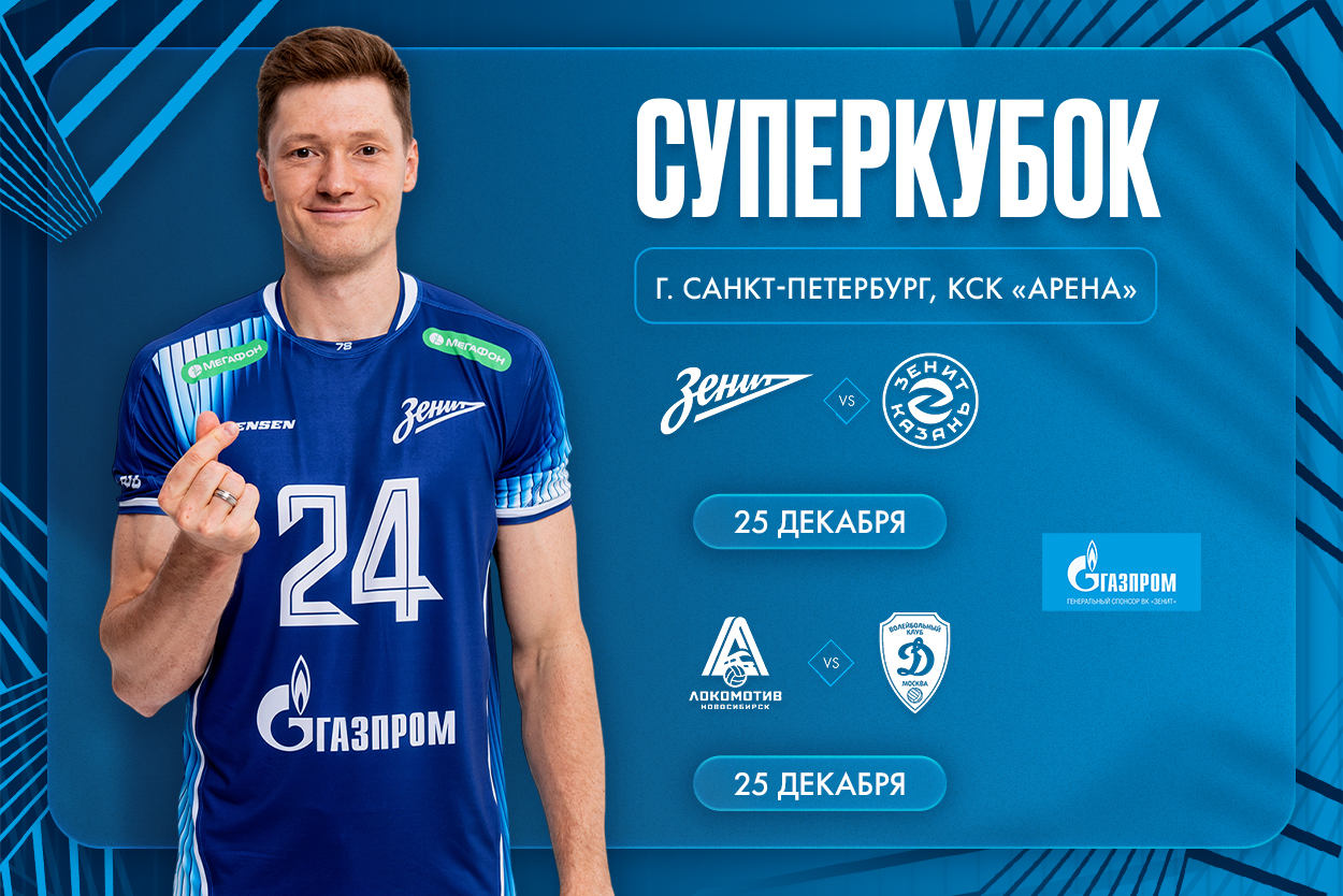Игры пройдут 25 декабря в КСК «Арена», финал – там же 26 декабря, время матчей станет известно на следующей неделе. Таким образом, петербургских болельщиков в декабре ожидает сразу 2 зенитовских дерби: 6 декабря в рамках Суперлиги, и 25 декабря – в полуфинале Суперкубка. Ждём вас на трибунах!