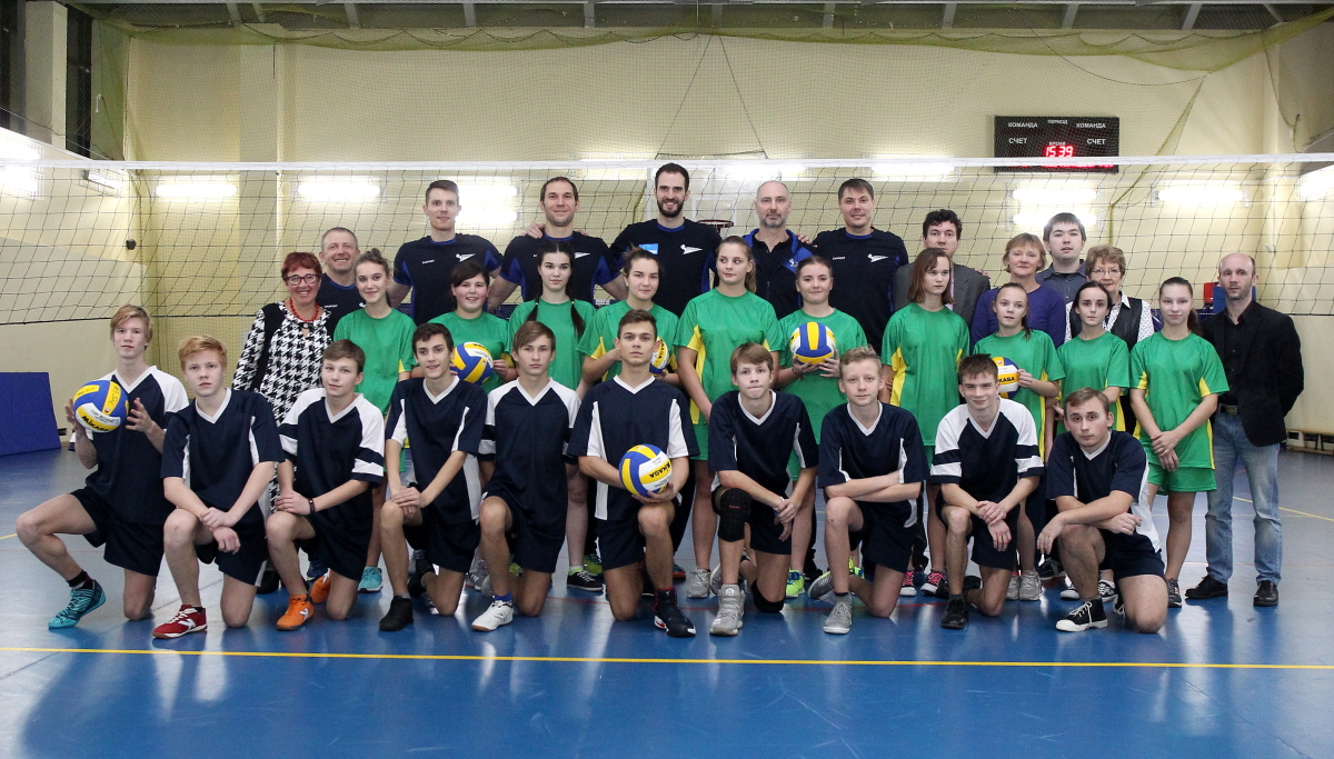 После этого главный тренер команды Александр Климкин показал базовые элементы волейбола: передача мяча сверху, снизу, а также подача мяча. В завершение тренировки состоялись два волейбольных матча – в первом соперничали мальчики, во втором – девочки. Играющими наставниками команд были Андрей Ащев, Александр Волков, Евгений Сивожелез и Максим Шульгин.