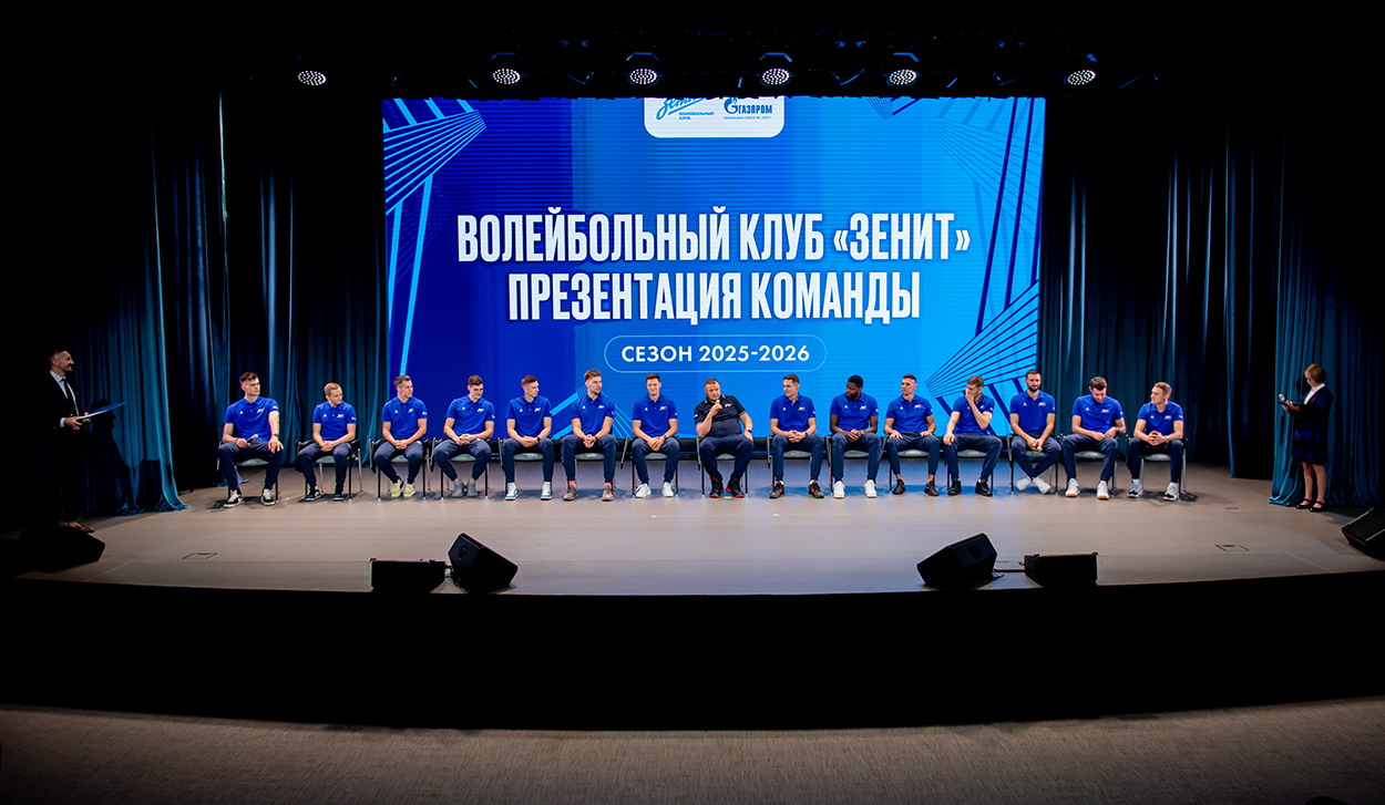 На сцене «Газпром школы Санкт-Петербург» волейбольный клуб «Зенит» собрался полным составом, включая капитана Женю Гребенникова и Марлона Янта, вернувшихся после чемпионата мира. Были и новички, присоединившиеся к команде в межсезонье: связующий Игорь Кобзарь, доигровщики Роман Пакшин и Максим Бочаров, центральные блокирующие Виталий Дикарев и Андрей Ананьев, и либеро Владимир Шишкин.