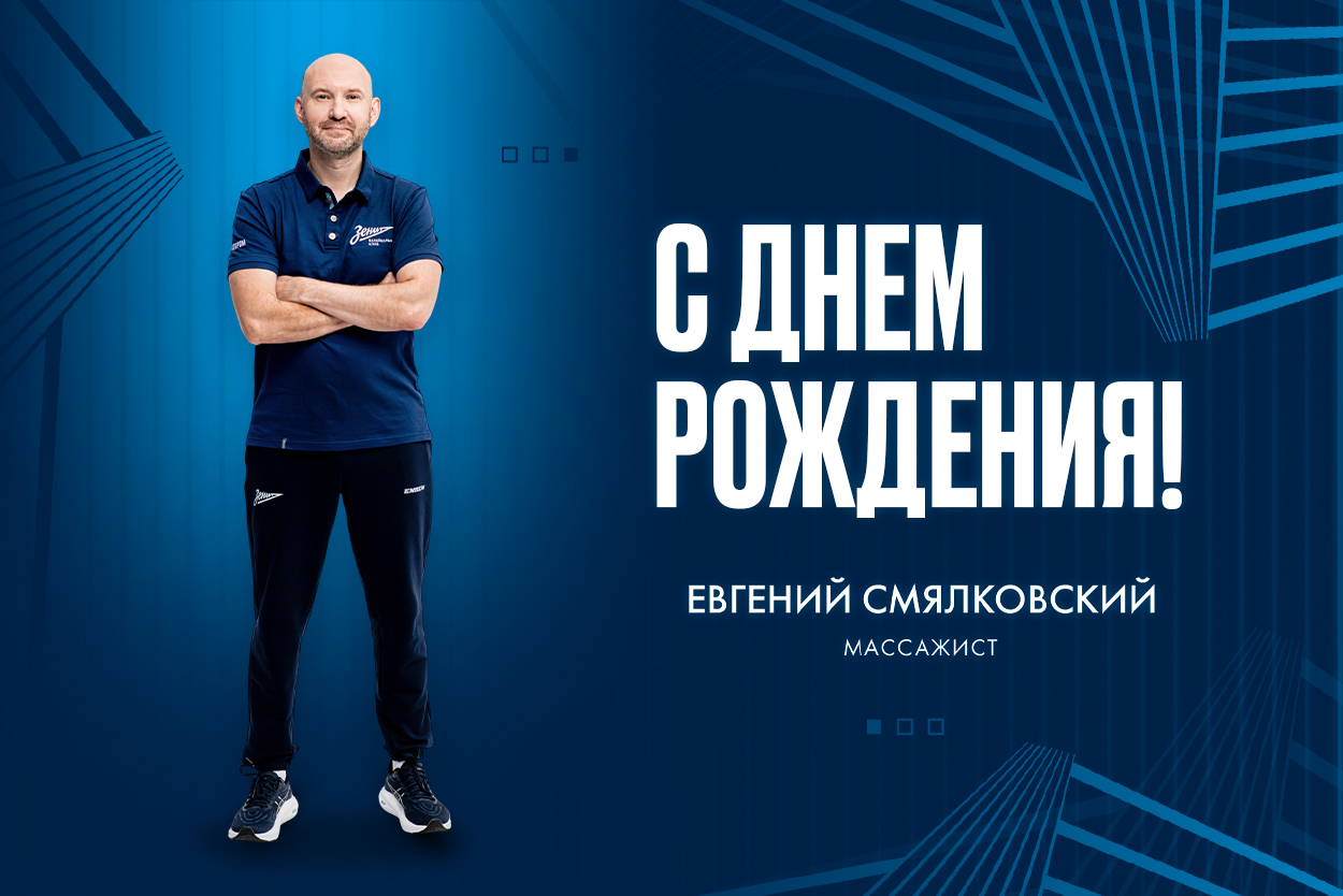 16 января свой день рождения отмечает массажист команды «Зенит» (Санкт-Петербург) Евгений Смялковский. Удачи, здоровья, счастья и, конечно, новых побед! С праздником!