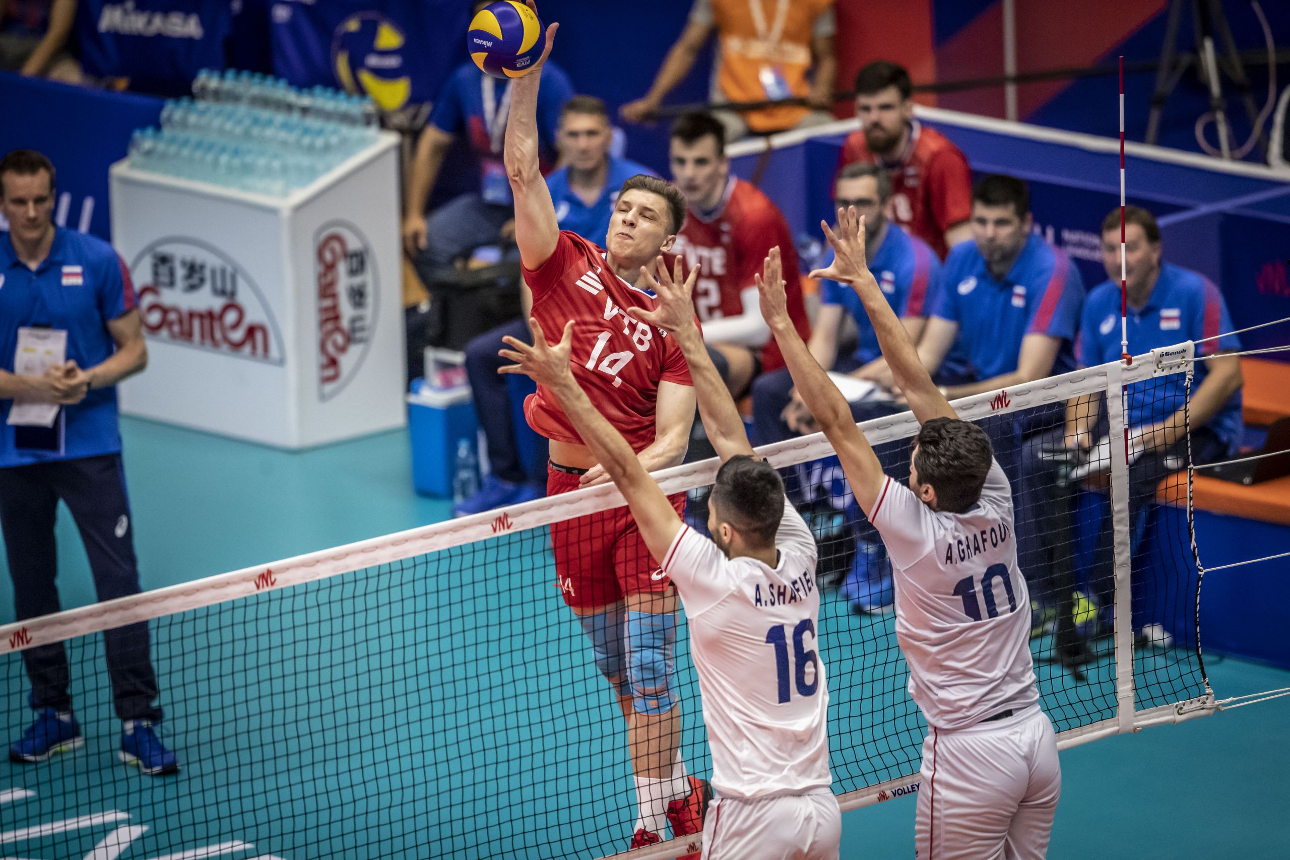 Благодаря фантастической поддержке трибун сборная Ирана уверенно взяла первый сет. Однако во второй партии подопечные Туомаса Саммелвуо перехватили инициативу — 16:10, 23:20. Тем не менее, в концовке хозяева смогли не только догнать россиян, но и спасти сет. Судьба следующей партии тоже решалась в формате «больше-меньше» — и вновь чуть удачливее оказались иранцы.