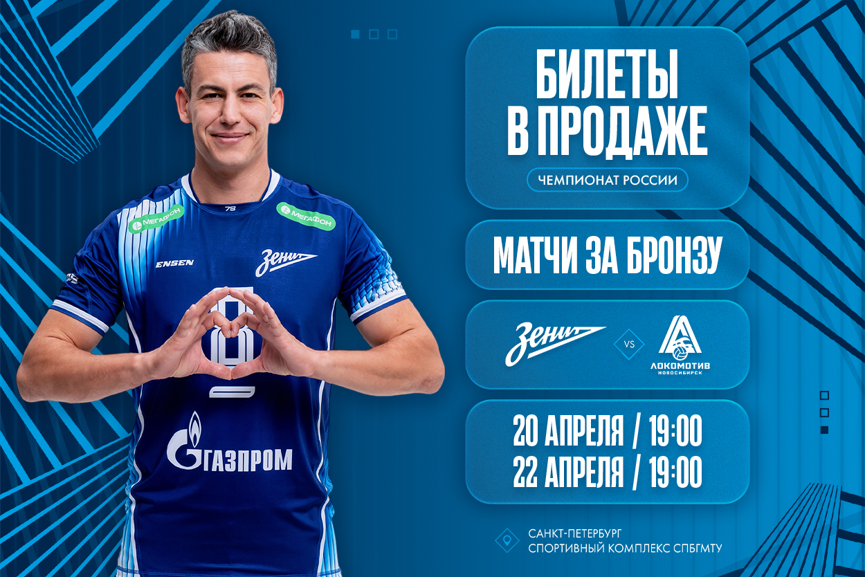 20 и 22 апреля в серии за бронзовые награды Суперлиги «Зенит» сыграет против новосибирского «Локомотива», серия до 3-х побед стартует в Петербурге. Оба матча пройдут в спорткомплексе Санкт-Петербургского Государственного Морского Технического Университета по адресу Ленинский проспект 101 стр.2 в 19.00. Затем серия переедет в Новосибирск. В случае необходимости, пятый матч пройдет в Петербурге 2 мая.