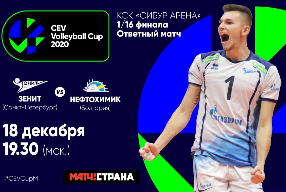 18 декабря в 19.30 в КСК «СИБУР АРЕНА» «Зенит» (Санкт-Петербург) проведёт заключительный домашний матч в 2019 году — в рамках ответной встречи 1/16 финала Кубка ЕКВ с болгарским «Нефтохимиком». Болельщиков ожидают всевозможные конкурсы и новогодние сюрпризы. Билеты — на vczenit.ru.