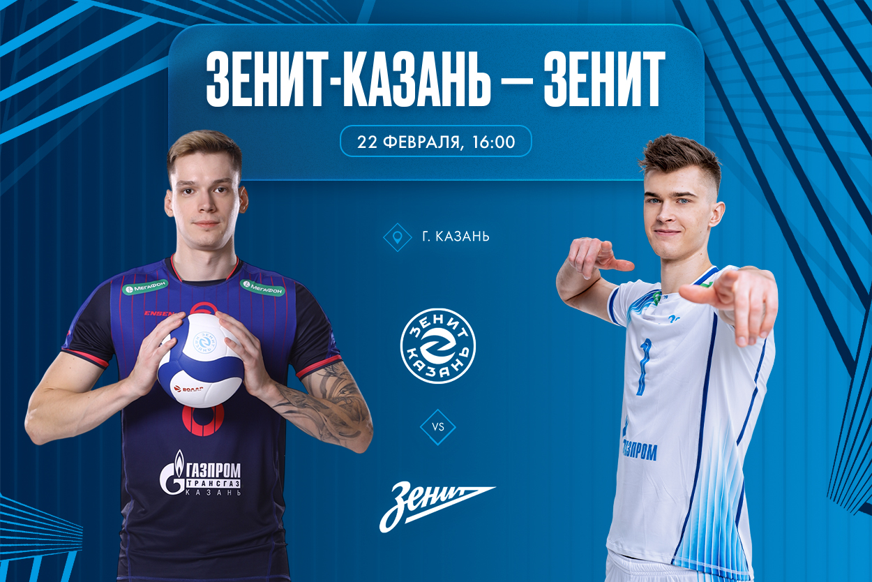 Матч «Зенит-Казань» — «Зенит» начнется завтра, 22 февраля, в Казани в 16.00. Поболеть за сине-бело-голубых можно на телеканалах «Матч! Арена», «Волейбол», а также на нашем сайте и volley.ru.