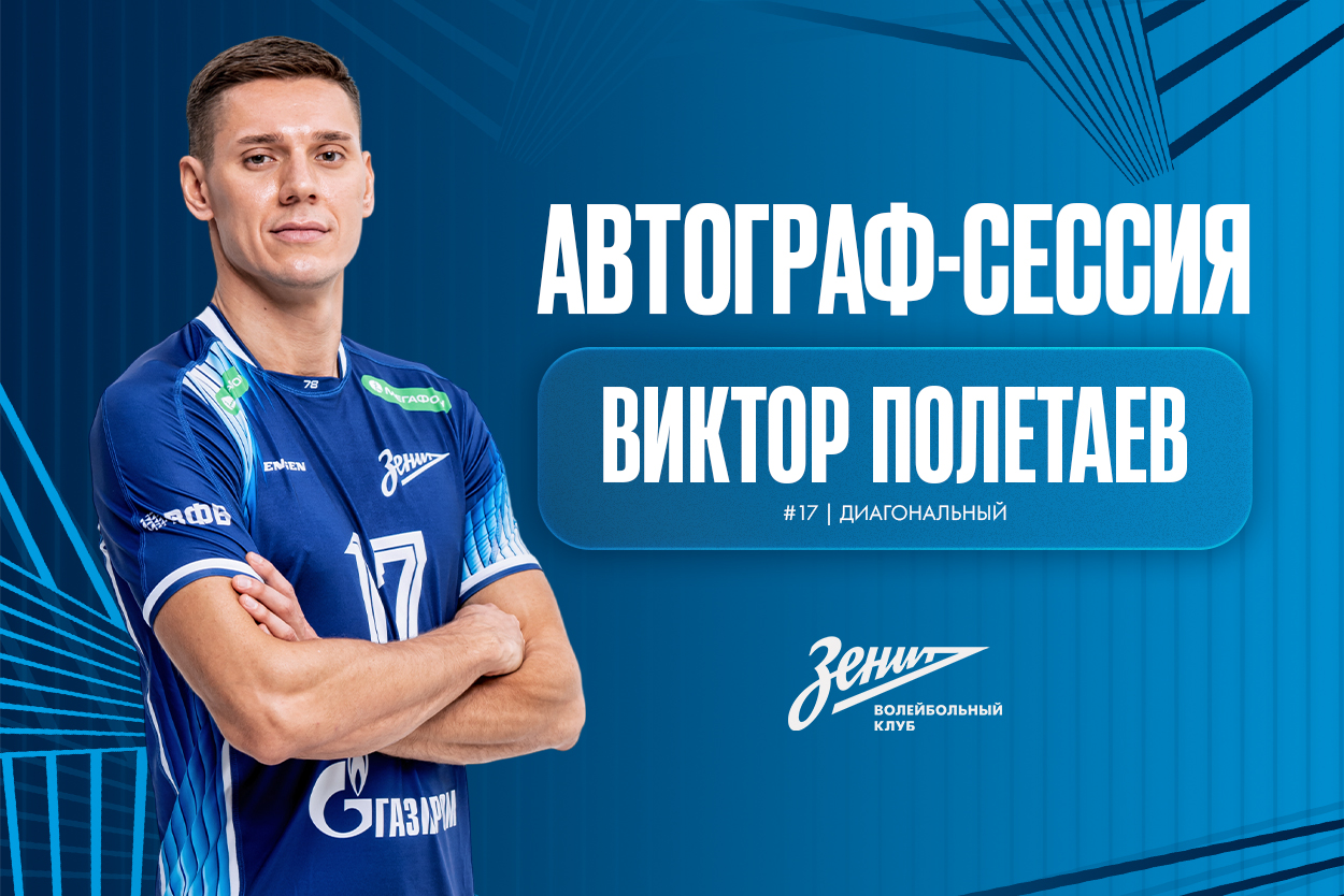 А перед встречей «Зенит» — «Динамо-ЛО», с 18.00 до 18.30 в фойе между секторами 6 и 7 пройдет автограф-сессия нашего диагонального, серебряного призера Олимпиады в Токио Виктора Полетаева!
