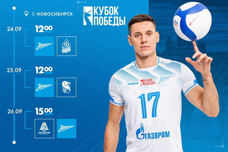 «Зенит» сегодня отправится в Новосибирск, где с 24 по 26 сентября пройдёт второй тур Кубка Победы. Команда Владимира Алекно так же, как и в Туле, сыграет с уфимским «Динамо-Урал», белгородским «Белогорьем» и местным «Локомотивом». После первого тура сине-бело-голубые с двумя победами и одним поражением занимают вторую строчку в группе, лидируют подопечные Сергея Баранова.