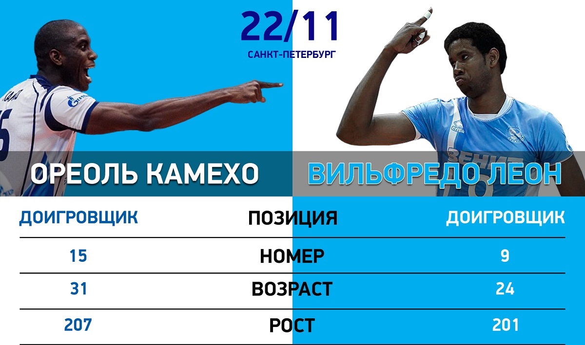 Пожалуй, одной из главных интриг сегодняшнего дерби является противостояние двух кубинских доигровщиков – лучшего игрока планеты Вильфредо Леона и лидера петербуржцев Ореоля Камехо. Оба в текущем чемпионате – как, впрочем, почти всегда – демонстрируют потрясающий волейбол.