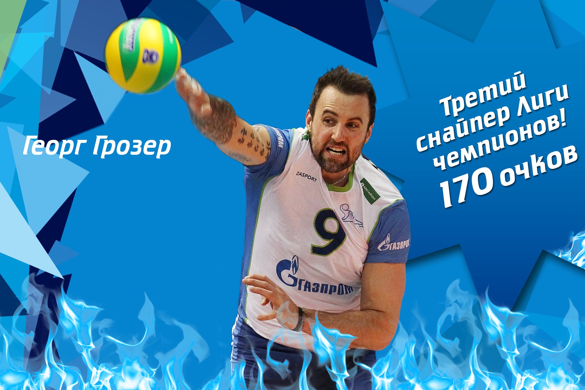 Подошел к концу очередной сезон самого престижного европейского турнира – Лиги чемпионов, ставший первым в истории волейбольного клуба «Зенит» (Санкт-Петербург). И вновь в лидерах – диагональный зенитовцев Георг Грозер – третий снайпер (169 очков в 8 матчах) и третий среди лучших подающих (21 эйс в 8 матчах) соревнований.