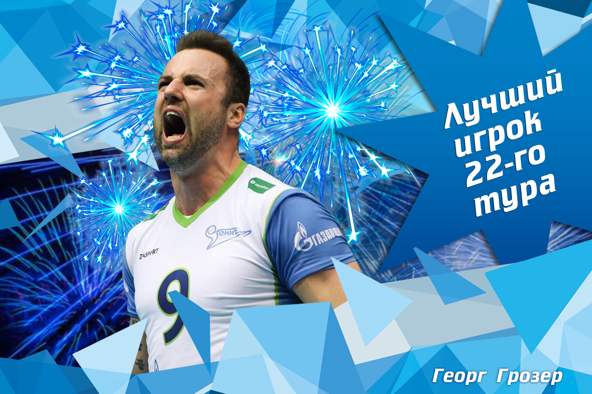 Немецкий диагональный волейбольного клуба «Зенит» (Санкт-Петербург) Георг Грозер в результате опроса в социальных сетях ВФВ признан самым полезным игроком 22-го тура Суперлиги. За него проголосовали 49 процентов респондентов, у финишировавшего вторым центрального блокирующего кемеровского «Кузбасса» Дмитрия Пашицкого – 22 %.