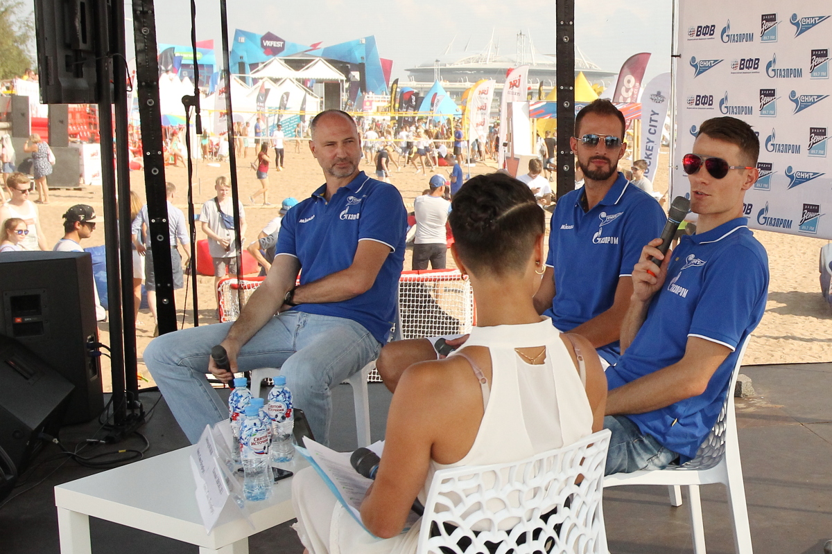 Главный тренер волейбольного клуба «Зенит» (Санкт-Петербург) Александр Климкин, а также игроки Александр Волков и Евгений Сивожелез приняли участие в фестивале VK FEST- 2018.