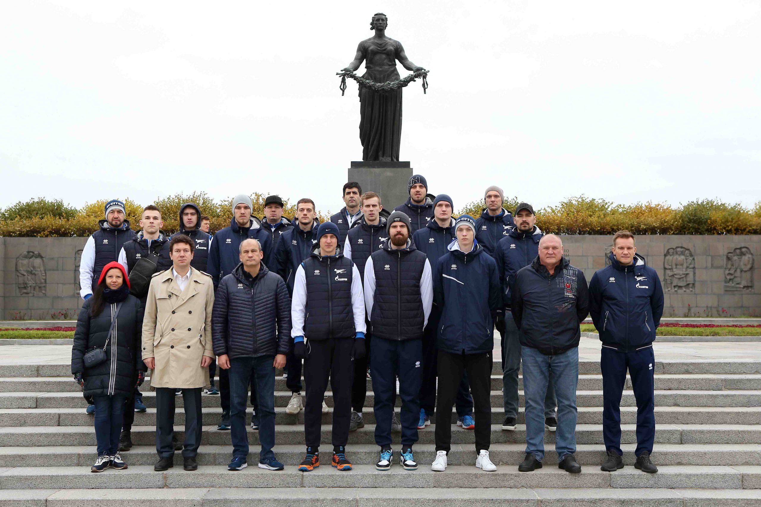 Волейболисты, тренеры и сотрудники волейбольного клуба «Зенит» (Санкт-Петербург) посетили Пискаревский мемориальный комплекс и возложили цветы к монументу «Мать-Родина».