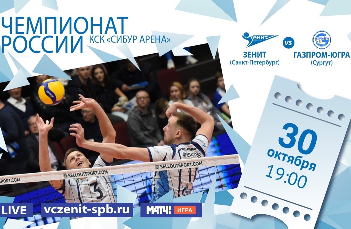 30 октября в 19.00 «Зенит» (Санкт-Петербург) в КСК «СИБУР АРЕНА» во 2-м туре Суперлиги Париматч-2019/20 встретится с «Газпром-Югрой» из Сургута.