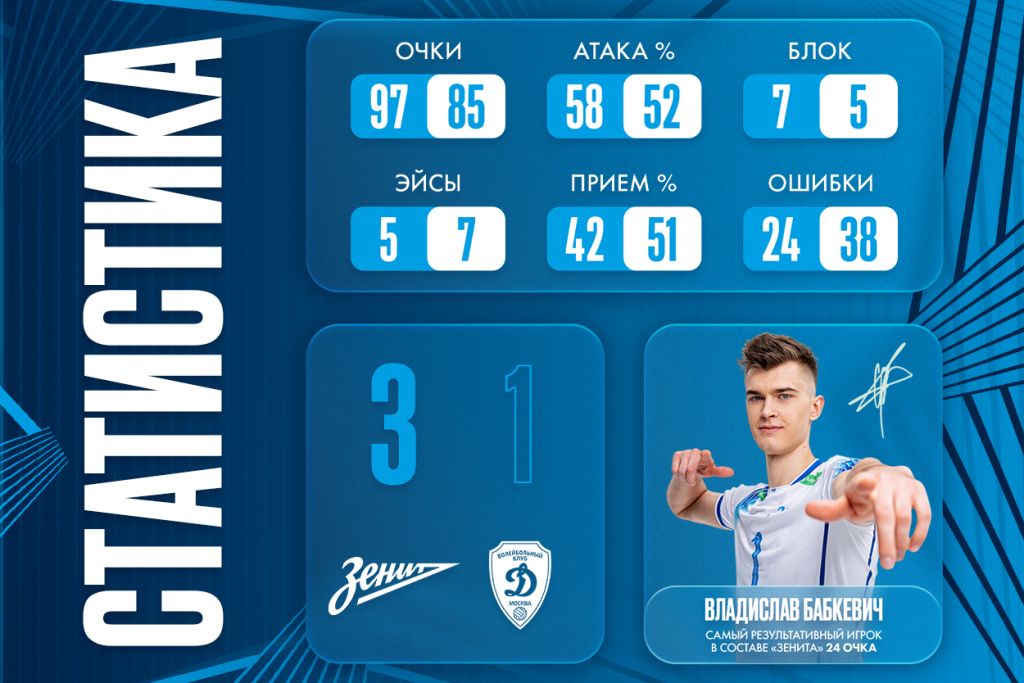 Зенит (Санкт-Петербург) — Динамо (Москва) — 3:1 (25:21, 22:25, 25:19, 25:20)