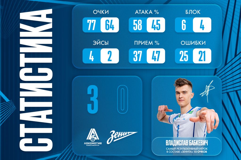 Локомотив (Новосибирск) — Зенит (Санкт-Петербург) — 3:0 (25:19, 27:25, 25:20)